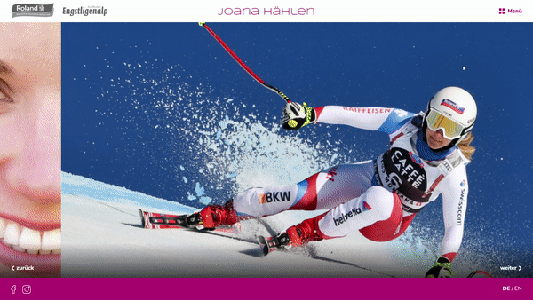 Joana Hählen fährt im Weltcup regelmässig in die Punkte und in der Saison 2019/2020 erreichte sie zweimal das Podest. Für Joana haben wir die Webseite konzeptioniert und umgesetzt. Sie passt sich den Bildschirmgrössen an, das Scrollverhalten ist vertikal und die Startseite mit einer grossen Bildergalerie umgesetzt. Ende 2020 haben wir für den Fanclub von Joana einen kleinen Shop auf der Seite integriert, wo Mützen und Mitgliedschaften erhältlich sind.